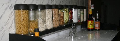 A close-up view of how Alice arranged things on the top shelf of this unit.