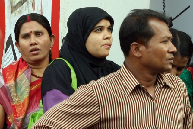 BOI MELA ATTENDEES waiting for the gates to open on the last day of the month long book fair.