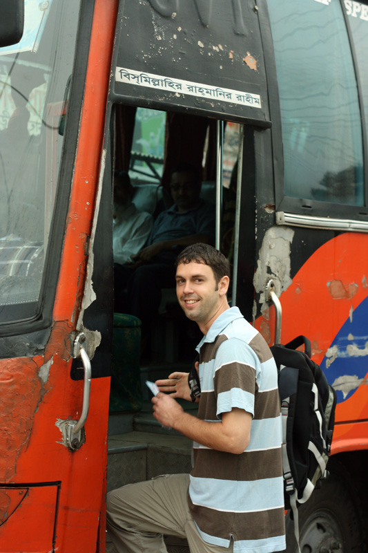 MY FRIEND GETTING ON THE BUS FOR DHAKA. I traveled with the truck to Dhaka.