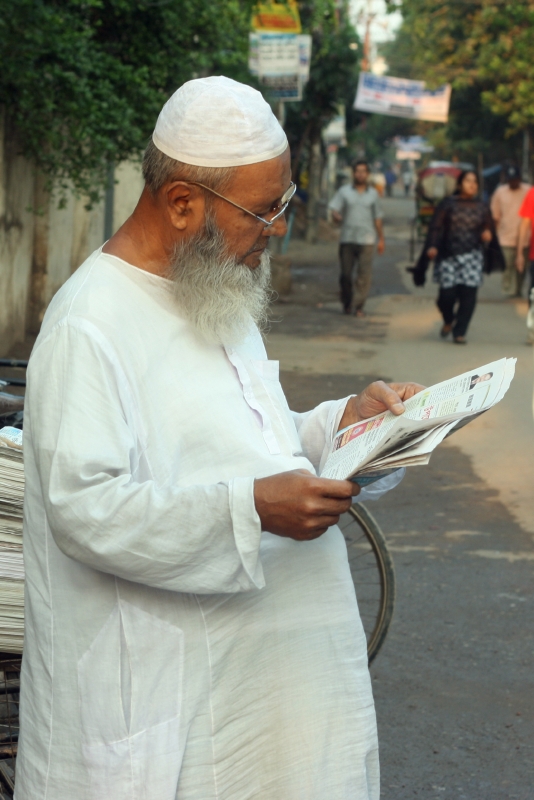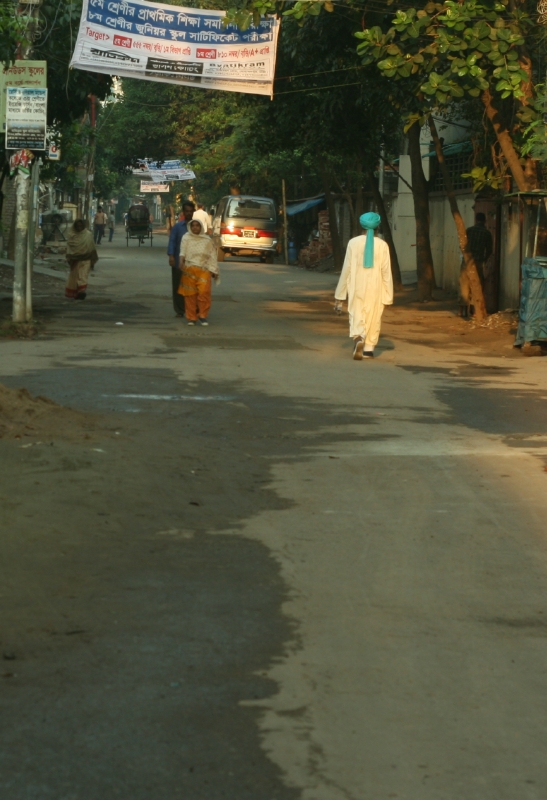 STREET SWEEPER ON MIRPUR ROAD in Dhaka, the capital city of Bangladesh. These sweepers do a great job of daily taking care of the garbage that collects each day in the city.