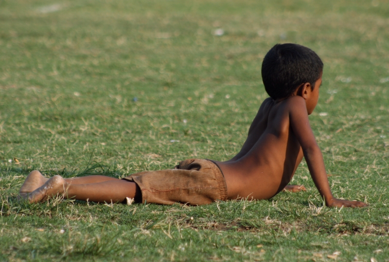 YOUNG LAD ON THE GRASS at the playing field in Town Hall. Exercising, half-time show, or just stretching?