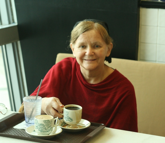 IDA, OUR FRIEND ENJOYING OUR photo book. She had invited us over for supper along with her mother, and Carol, another friend. It was a fun evening of getting caught up on recent events in our lives, reminiscing about the good times we had together in years past, and of course a good cup of coffee.