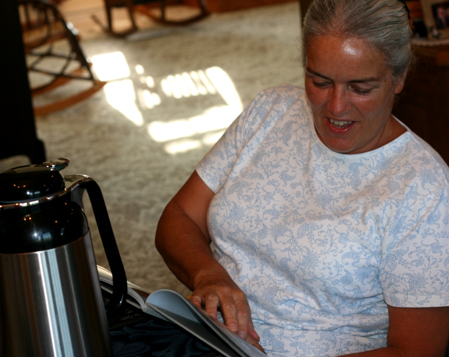 IDA, OUR FRIEND ENJOYING OUR photo book. She had invited us over for supper along with her mother, and Carol, another friend. It was a fun evening of getting caught up on recent events in our lives, reminiscing about the good times we had together in years past, and of course a good cup of coffee.