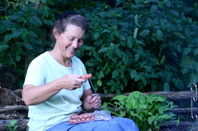 OUR FRIEND CAROL, who invited friends over and we had a hot dog roast, and finished up with smores (graham crackers, hershey choc bar pieces, and roasted marshmallows). It was a nice evening around the fire.