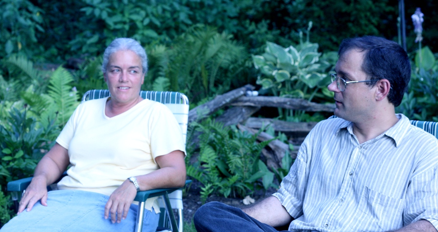OUR FRIEND IDA, and Dustin chatting around the fire at our friend Carol’s place.