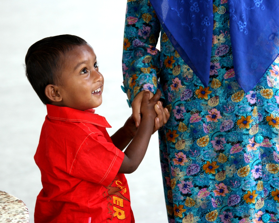 THIS BENGALI BOY IS ENJOYING SOMETHING as he and his mother wait for the train at the Kamalapur Station in Dhaka, Bangladesh.