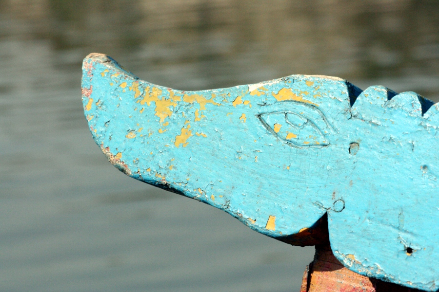 A BLUE ALLIGATOR? WHAT IS IT? It is a unique way to spice up the decor by shaping and painting the rail on the side of the boat. This is very typical of how they dress up many of their vehicles: Trucks; Rickshaws; CNGs; and Tempos.