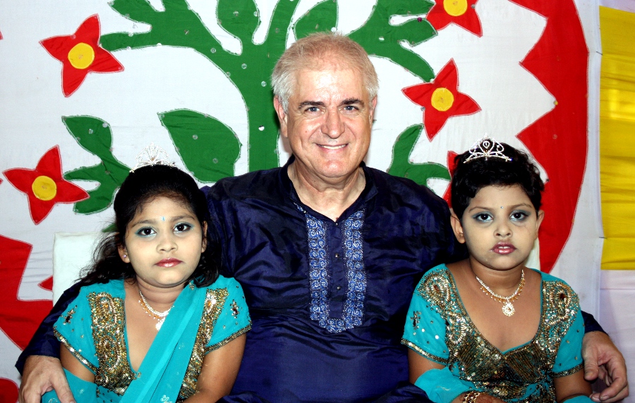 YOUNG GIRL’S CONFURANO PARTY! My friend Halim called me and wanted me to come with him to Lalbag. I thought he meant the Lalbagh Fort! I said I was too busy, in the middle of Bangla vocab dictation and had an errand to run for my wife. His wife, Rumki then called and asked if I could come. Instead of Bangla dictation I quickly cut 4 loaves for Alice so I could go with Halim. Then Rumki called again and said I should dress in something handsome and dressy. Halim was at the mosque doing prayers when I arrived, so I chatted with Rumki. When Halim returned, along with his niece we took off in a CNG. I soon find out we are going to the Lalbagh area for a “Hearing.” He said in Bangla it is a confurano. I haven’t found it in a dictionary yet. Anyway it is a celebration for these two young Bengali girls who were relatives of Rumki. Rumki wasn’t feeling well so that is why she didn’t go along. It was a feast with chicken roast, curried chicken, cucumber slices, onions, alu (potato) chop, and Jorda (sweet rice).