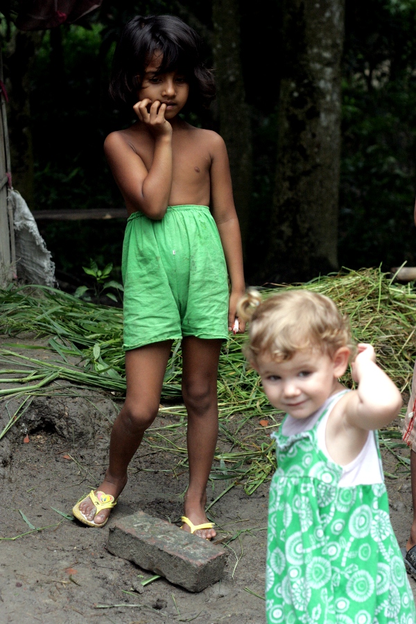 BENGALI VILLAGE GIRL WATCHING CHAYLA. It might be the first time a foreigner was visiting in this village. Notice the girl clutching the “smarties” (candy) that Candace had given her earlier.