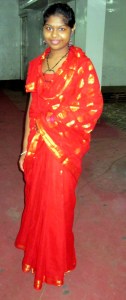 A YOUNG BENGALI GIRL DRESSED UP FOR THE GUY HOLUD CELEBRATION WHICH PRECEDES WEDDINGS.
