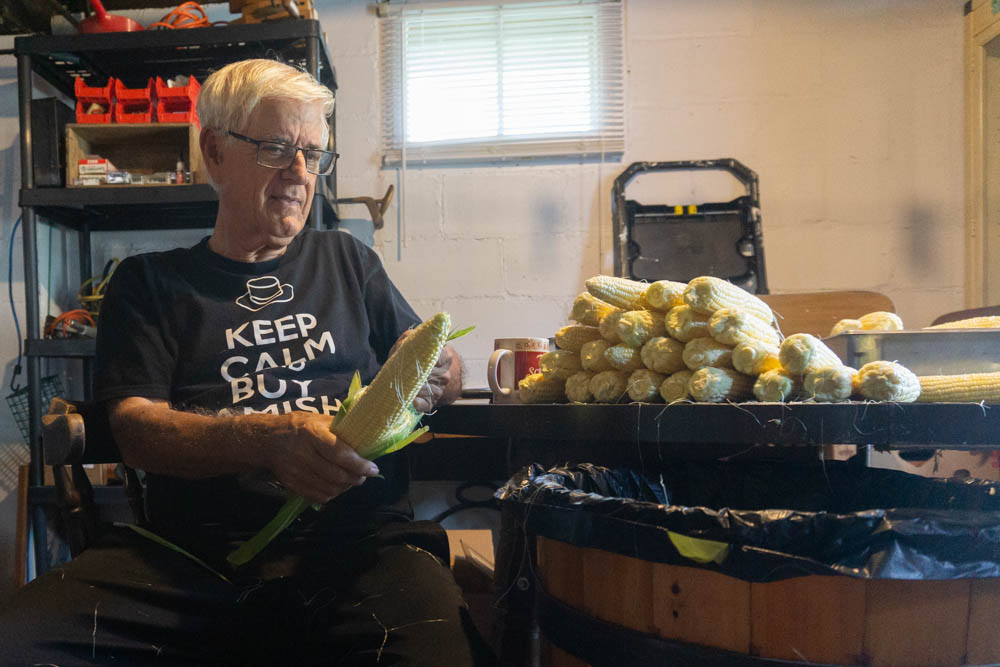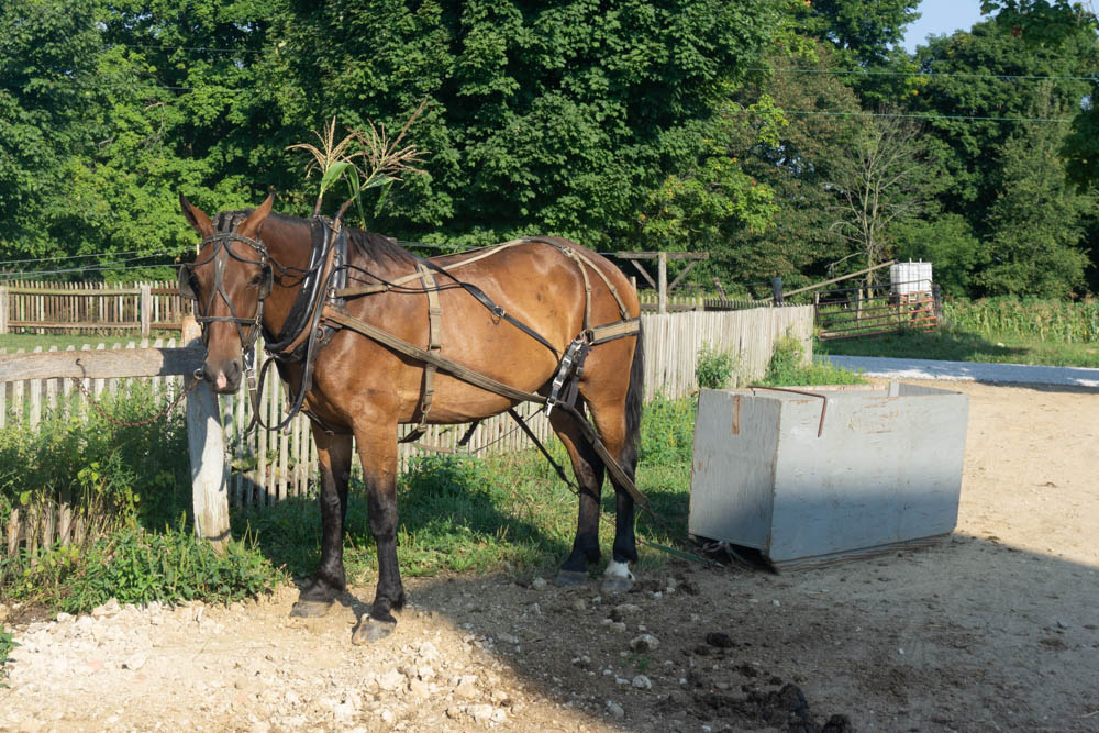A young boy rode this horse and pulled the sled out across the road to the field to put in the 109 ears of sweet corn that we wanted. That would make it real fresh, wouldn’t it. We paid for 9 dozen, so he gave us more than a baker’s dozen!
