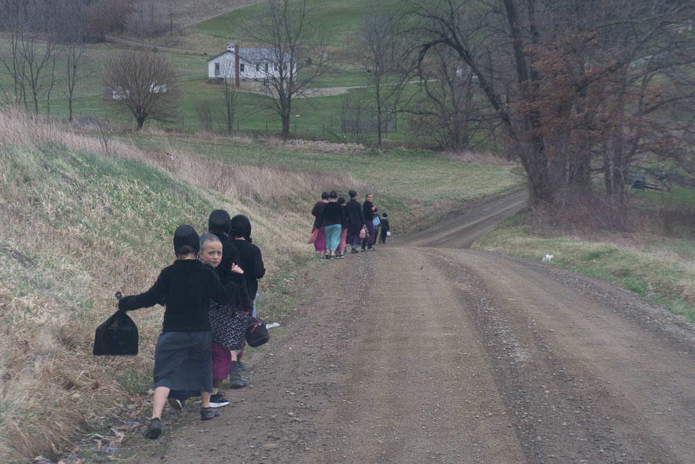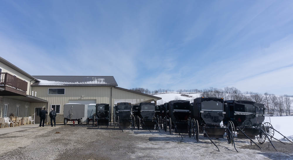 The gray wagon is what they use to take the folding church benches from one location to another.