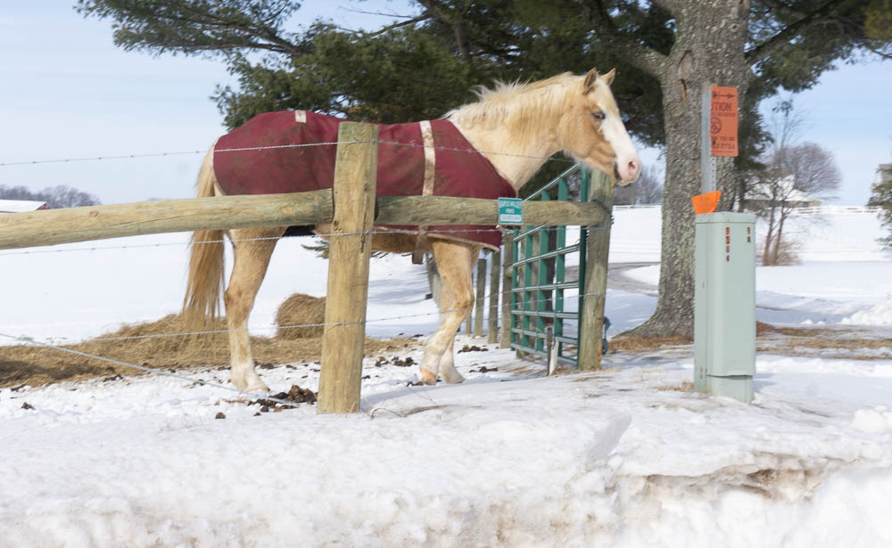 Yesterday we had temps in the 50’s, and the snow basically disappeared, so wondering if this horse shed his man-made Winter coat. I hear the temps are dipping again tonight!