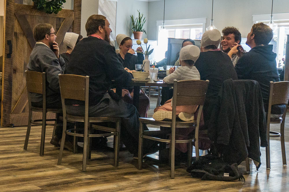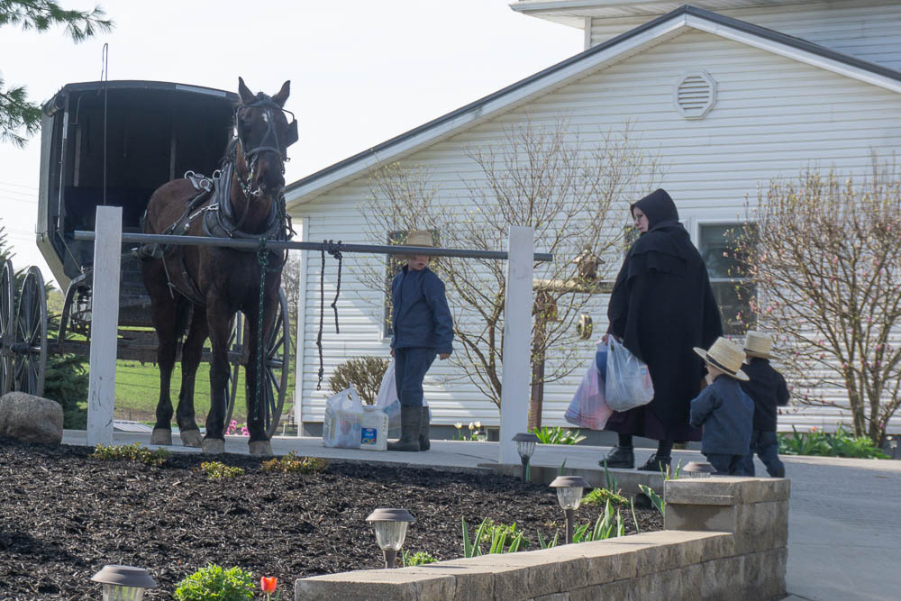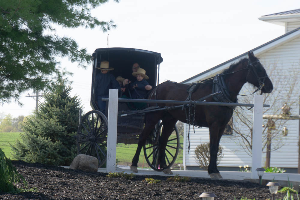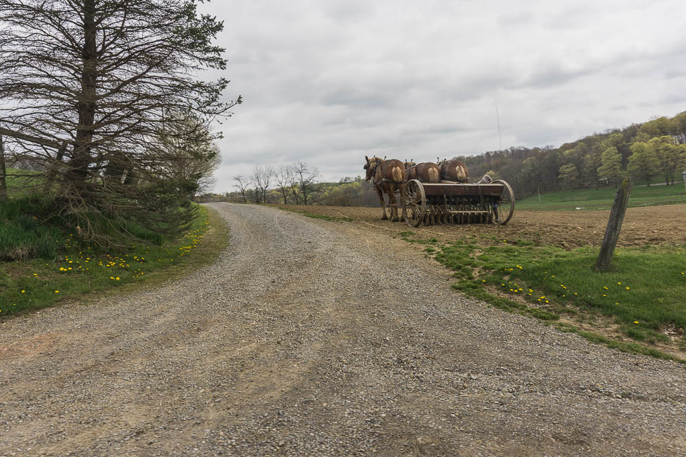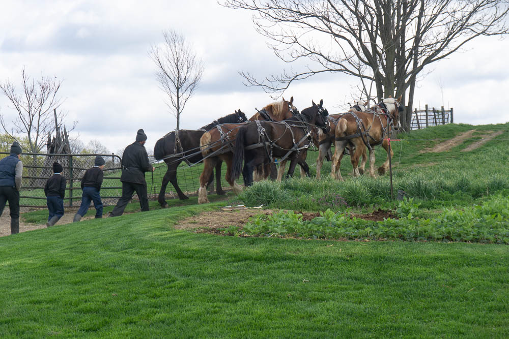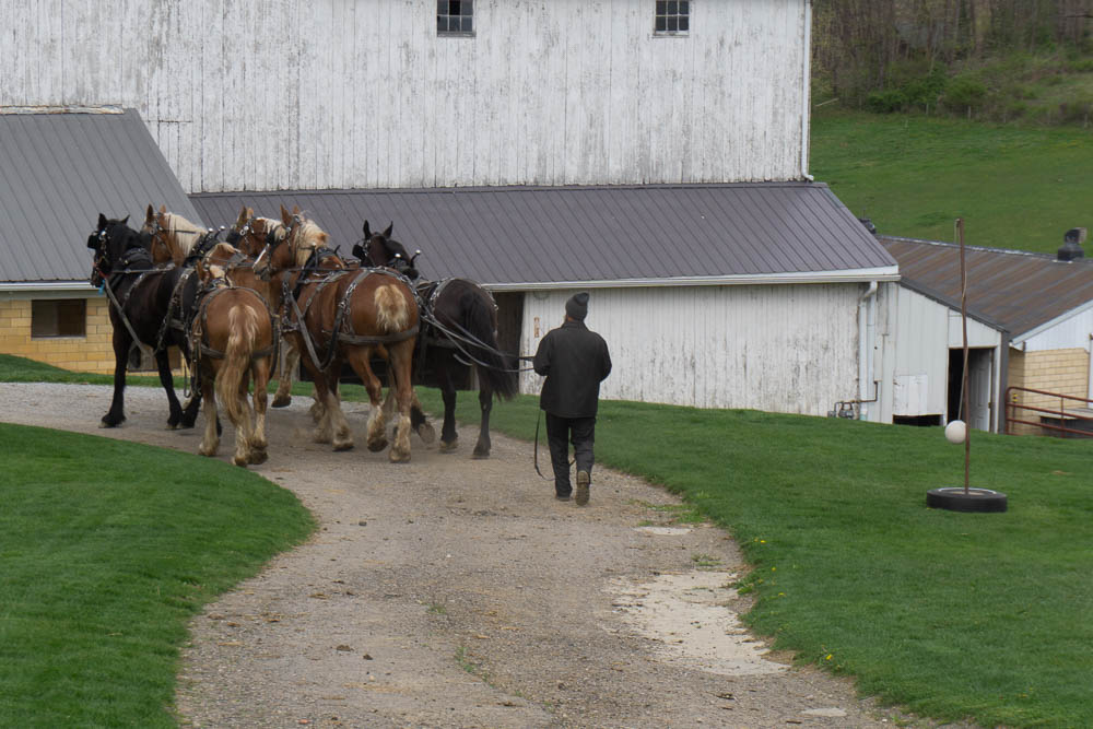 The five sisters and their mother stopped at this home for lunch. These folks had been neighbors when they were growing up, so were childhood friends. They even brought me a plate of food. While waiting This team of horses came in from the field so the horses could rest and the man could eat lunch. Then they headed out again in the afternoon, to continue the Spring plowing!