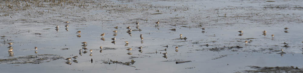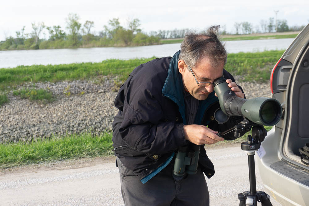 My son, Dustin looking through the scope at these Dunlins at Metzger Marsh in North Central Ohio! There were over 150 in this group (not all in photograph due to cropping).