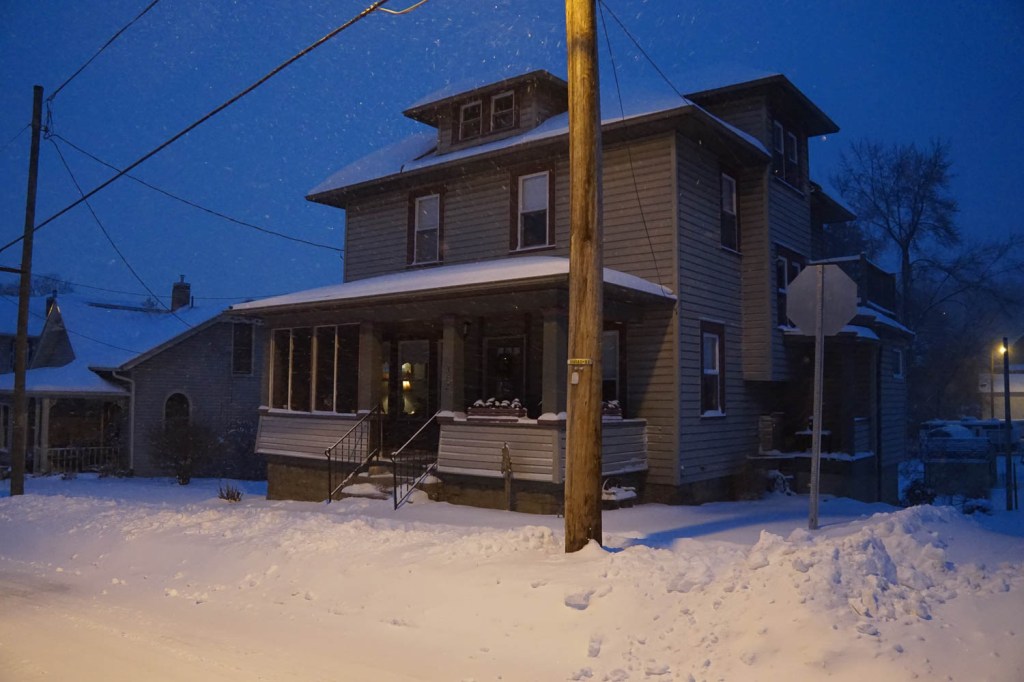 Our home after the first major snowfall of the season. Also before and after daylight. Also, before and after snow was cleared from the sidewalks and streets!