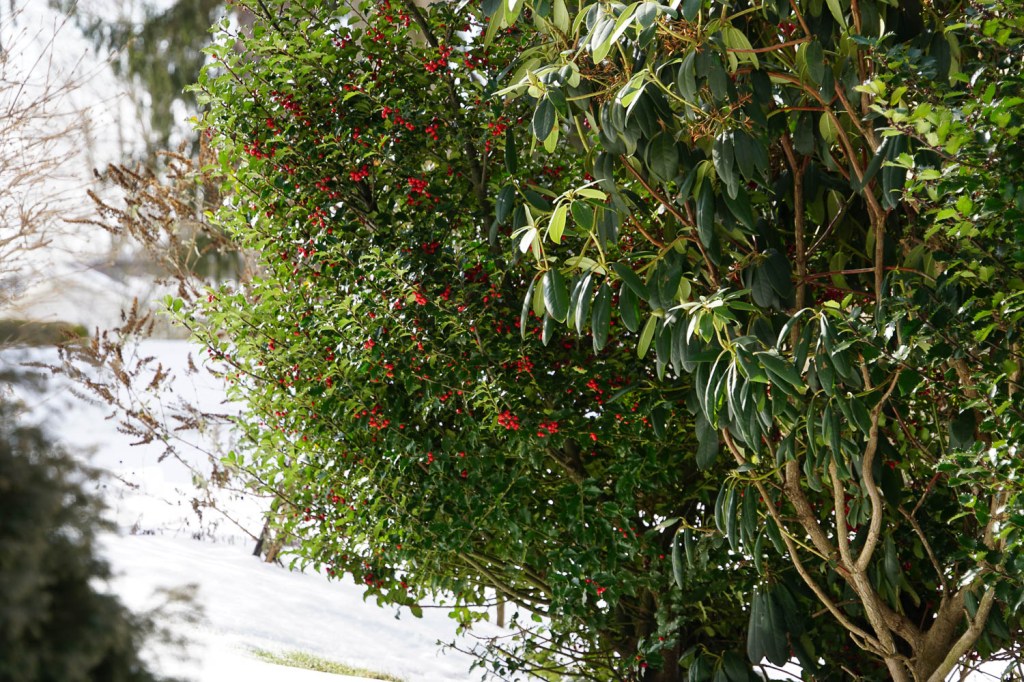 Somehow I thought these berries on the neighbor’s bush were mistletoe!! I guess not. She said we can use any of them we want in decorating. I was going to put them on top of all our doorways!!! 🙂 So much for that plan! Have a great January. By the the time you see this I will probably on my way to West Virginia, doing a 3-day meander towards Florida, with stops in W. Virginia, North Carolina, South Carolina! I might even post some photos of the hopefully “Sunny South!”