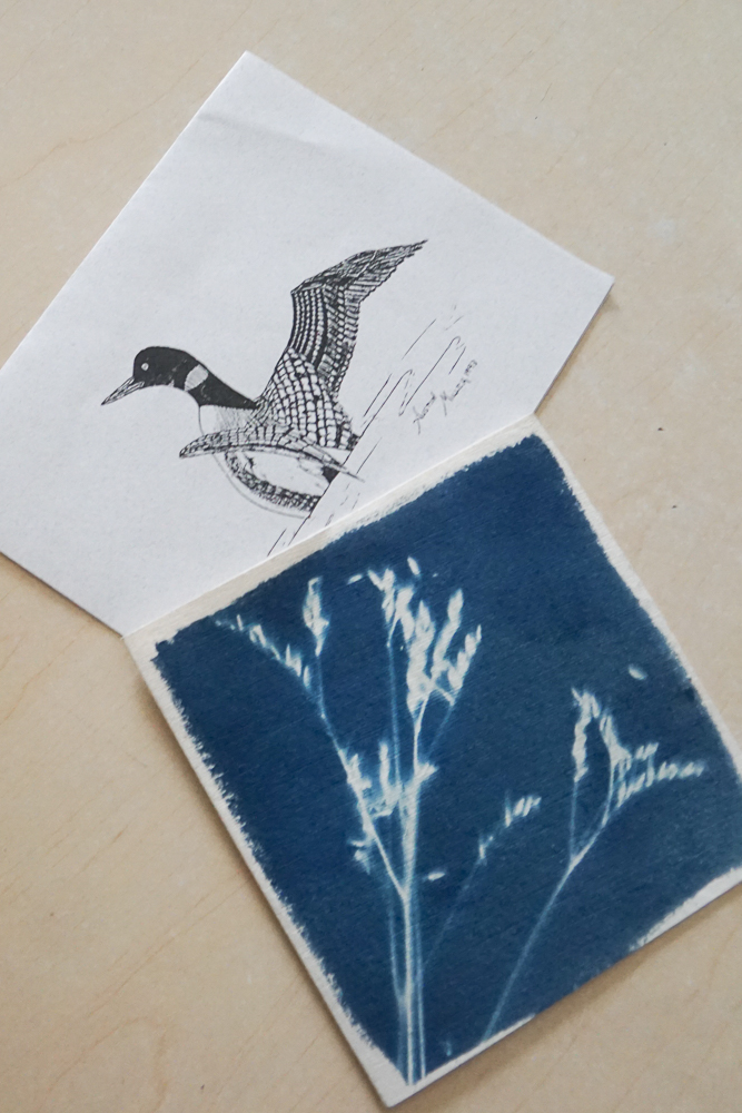 Both of these cards brought me pleasure when I received them recently! The drawing of the Loon took me back to 1993, when my son, Austin did the drawing and made cards with it. Thanks, Carol for sending this card, with the care package! The second card meant a lot because it was from Farhana, a fellow photographer, whom I had met 14 years ago. She made this card for me using the the Cyanotype printing technique. It was nice to catch up with her after not chatting for at least 8 years. Sometimes the things that might look little, are big because they are so precious. Thanks Carol and Farhana for taking the time to share these meaningful cards with me.