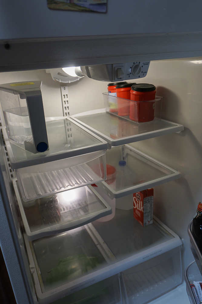 Fridge need’s restocking! As type my wife returned from her shopping trip with a lot of veggies, etc to replenish this empty cavern!