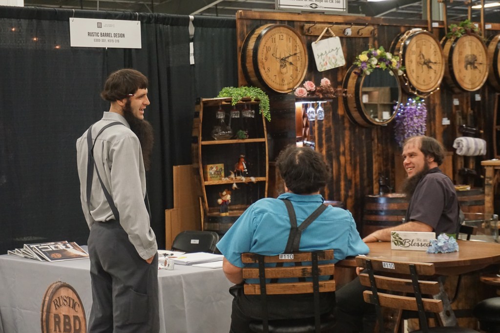 This was a snapshot of the “Rustic Barrel Design” booth at the OHFM 2023 in Mt. Hope, Ohio, USA. OHFM is the Ohio Hardwood Furniture Market!