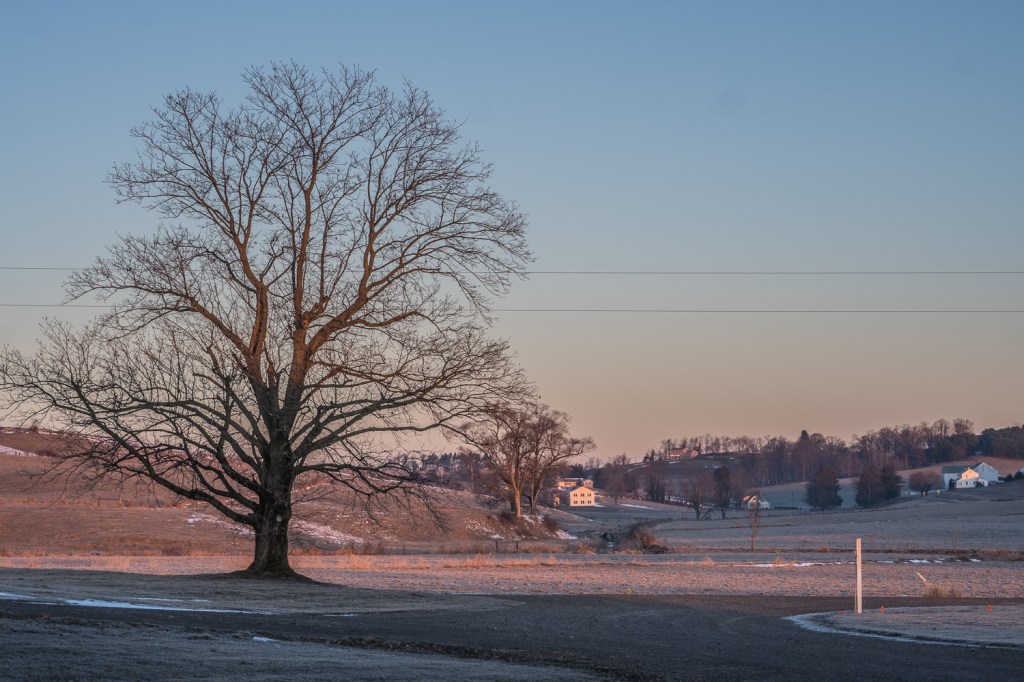 We are back in Ohio, and here is a early morning scene, showing just a remnant of the snow that fell last week.