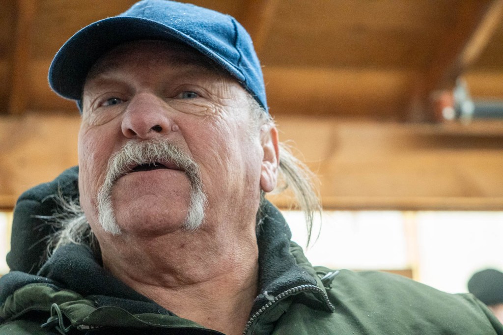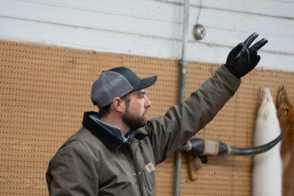 This helper is helping the auctioneer take bids at the auction.