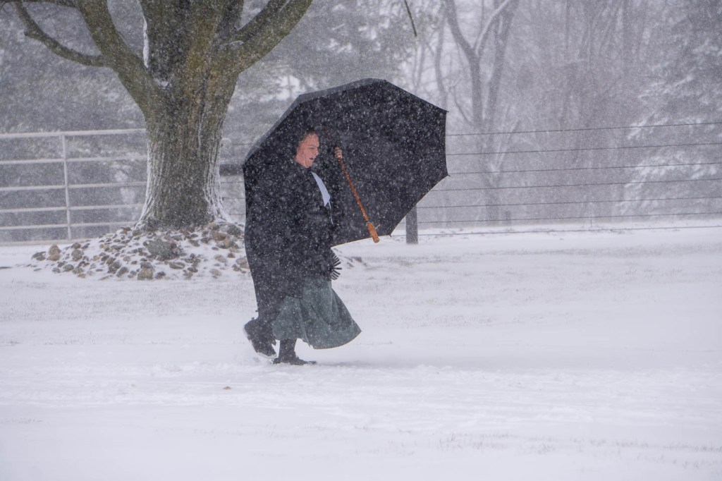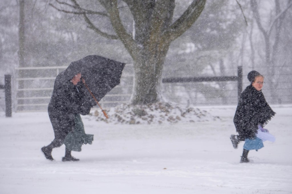 This Amish Mother and daughter decided to return and walk home later. When they had walked to church it had been a “balmy” 39 degrees F, but by noon things had changed, with a fierce west wind.