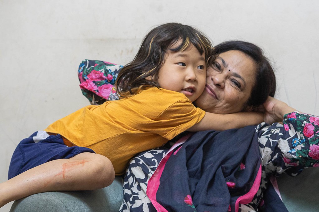 The child hugging the beautiful lady she calls Grandma!