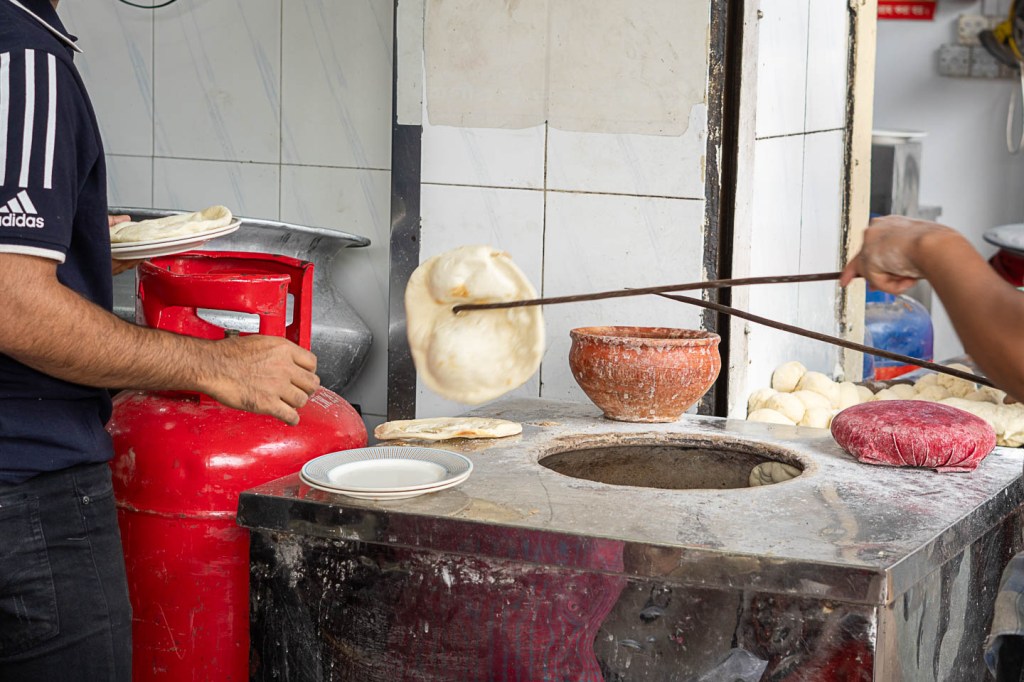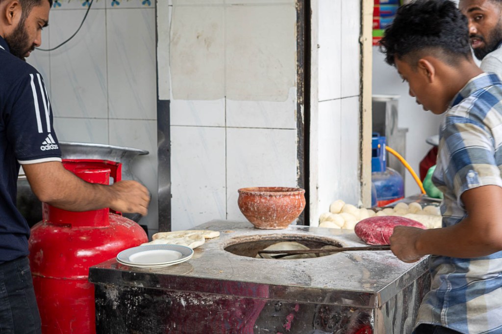 Picking the Nan Ruti (bread) out of the Tandoori Oven.
