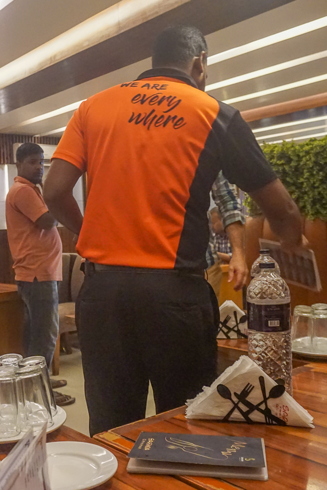 I was attracted by the saying on the shirt! I suspect they have restaurants in several locations. We sure did enjoy the food, especially the garlic nan.