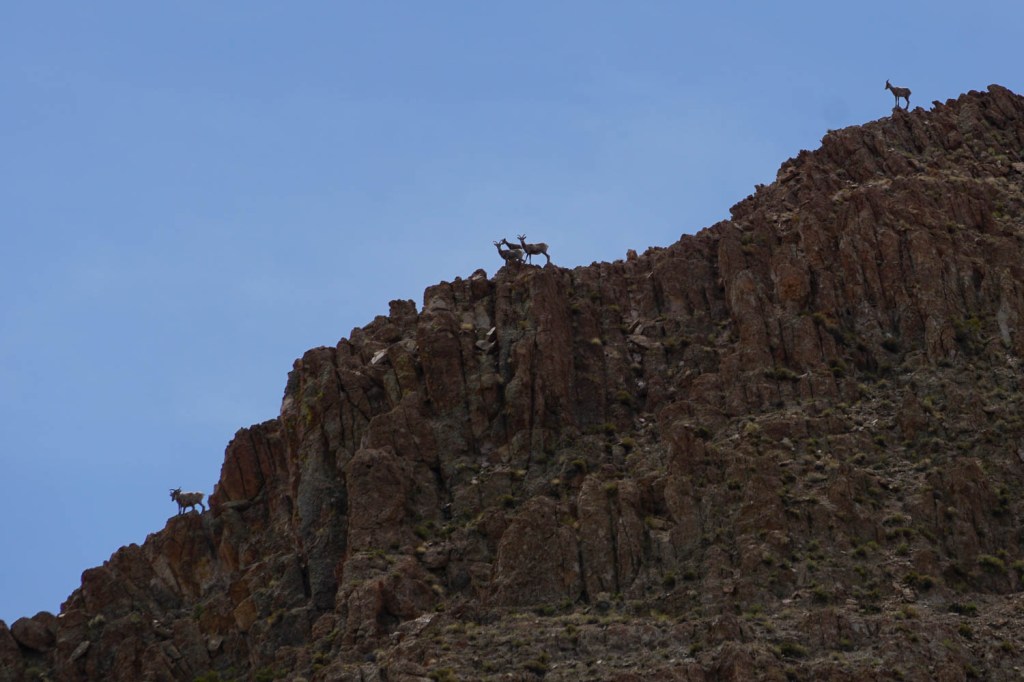 One of our sharp-eyed gang saw these desert bighorn sheep (likely) nicely silhouetted in the blue skies! I don’t remember what they said they were.