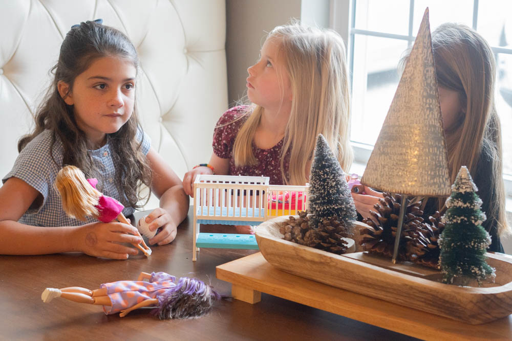 These girls weren’t impressed by the somewhat older girls who were looking over the booth divider to see what they were doing!