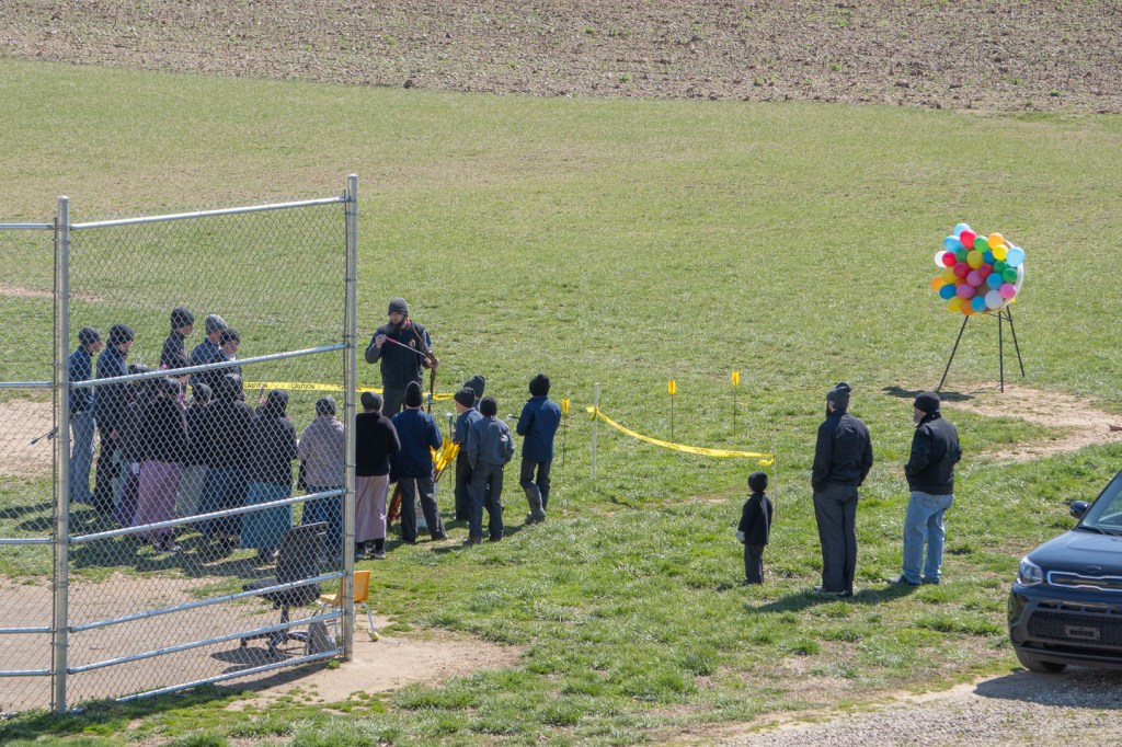 A gentleman from a local archery shop is demonstrating safety in using a bow and arrow. I didn’t stick around to see how many balloons were popped by the students!