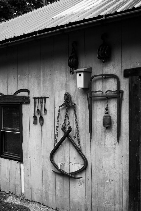 How many of you remember using the hay fork in the center of the photo? On the farm in Iowa, where I grew up, we used that kind of fork to lift up eight small hay bales into the hay mow at one time!