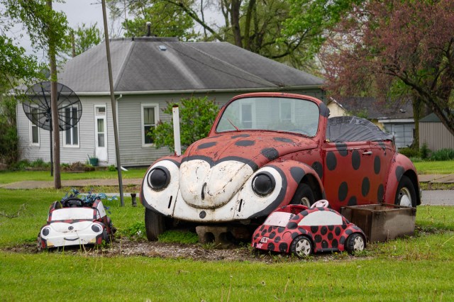 I spied this yard display of the iconic VW bug in Unionville, Iowa!