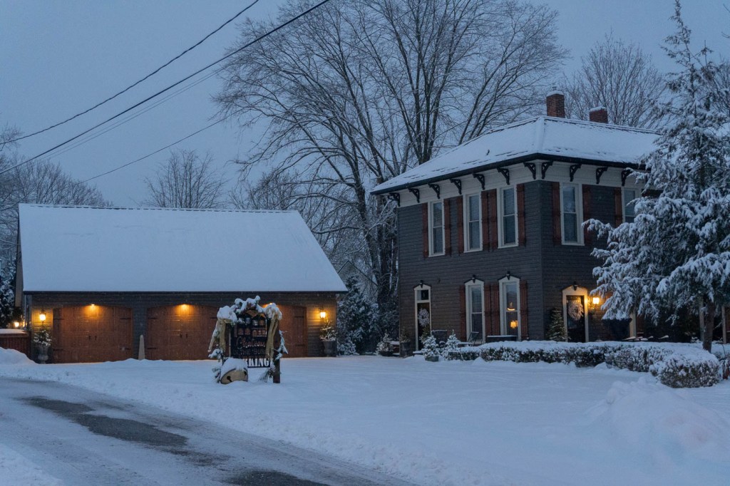 I dropped off an Amish family at their relative’s place for church, driving on bare gravel road. Seven hours later it had turned into a “Winter Wonderland” with snow and deep buggy tire tracks. I did make it home safely.