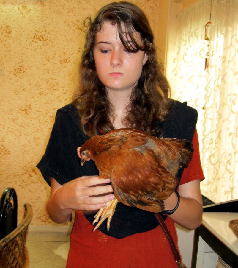 MY NIECE, BAILEY BRINGS A LIVE CHICKEN FROM THE MARKET into our apartment.