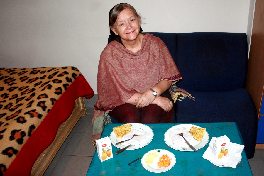 HAPPY BIRTHDAY MY SWEET WIFE! Here she is having her birthday breakfast. Mango juice, omelet, toast, butter, jelly, and coffee or tea. On this trip she has sure been enjoying the Kindle her friends gave her for an appreciation gift.