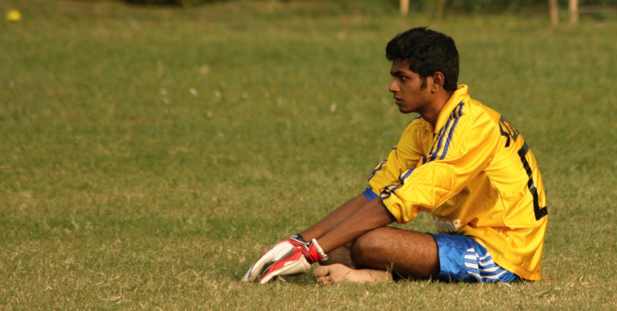 THIS GOALIE LOOKS BORED DURING THIS MATCH OF THE UNDERGROUND LEAGUE’S 2001 TALENT HUNTER’S TOURNAMENT!