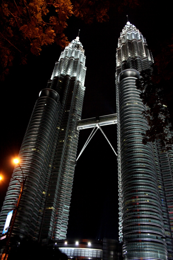 THE PETRONAS TWIN TOWERS IN KUALA LUMPUR, in Malaysia. I was laying down on the street for this photo. I was out walking and couldn’t get a good view, so I hired a taxi driver to take me to the twin towers for the photo. I said, I don’t want to be too close or too far away, so I could get a nice shot of them lit up at night. Lo and behold, he drove to and parked right across the street from them. Like I said, to get a good shot I had to get down as low as possible and shoot up! I think it was worth the cab fare.