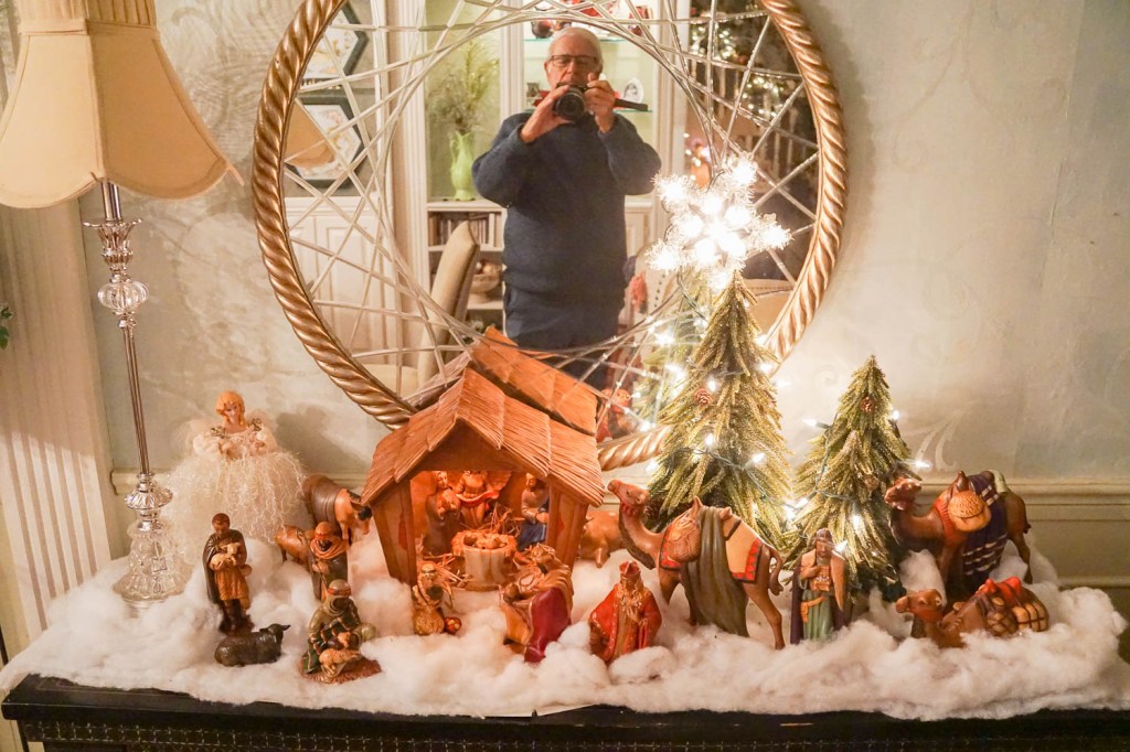 If you look back at posts from other years, you can also likely find my image in the mirror as I am trying to capture the beauty of this ceramic nativity scene, my sister-in-law did in the 70’s for her parents.
