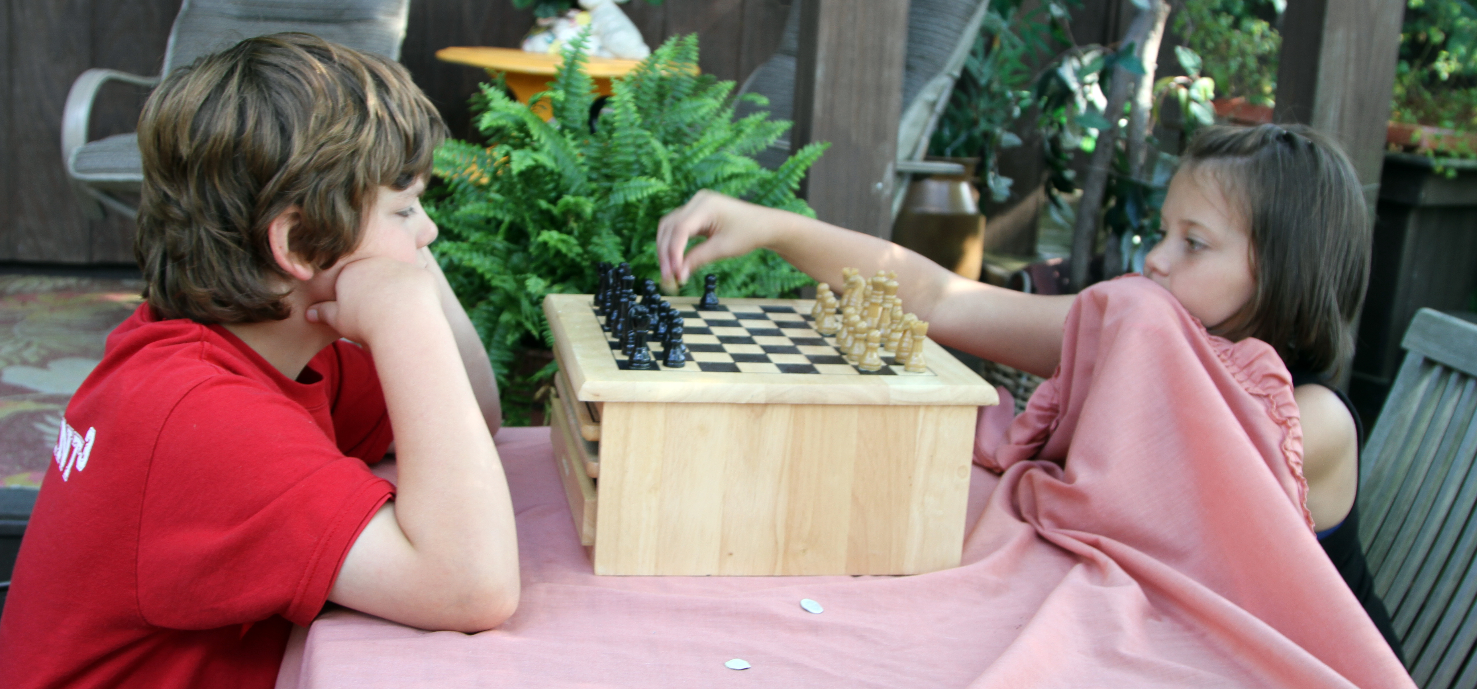 CINDY AND I HAVING A DUEL ON THE CHESS BOARD. We didn’t get to finish one game, but I think this is likely the game I lost! Chess is one of my favorite games.