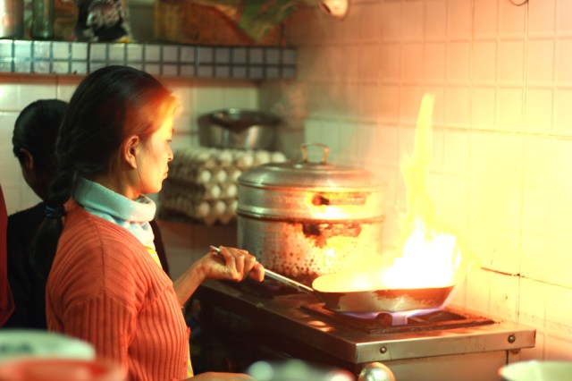 BAILEY IS STIRRING THE ALU (Potato) CHOP mixture with the proud Bengali cook looking on.