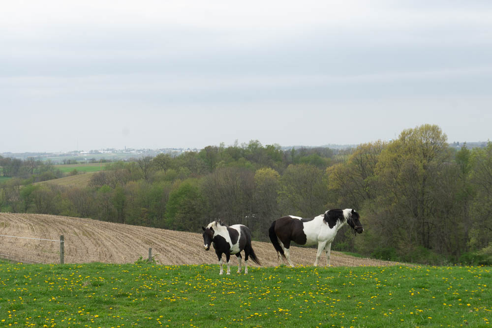 Horse grazing in the pasture field, a typical sight in Holmes County, Ohio.