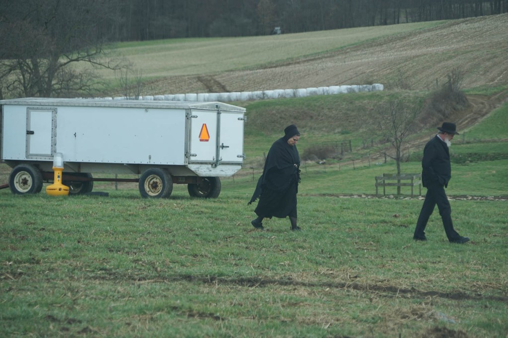 Going to pay respect for a gentleman who died of a massive heart attack! The wagon, is used to transport benches from one home to another for the Amish church services. These are also available for times like these. Note the battery-powered light which will light up the area for those coming in the late evening.