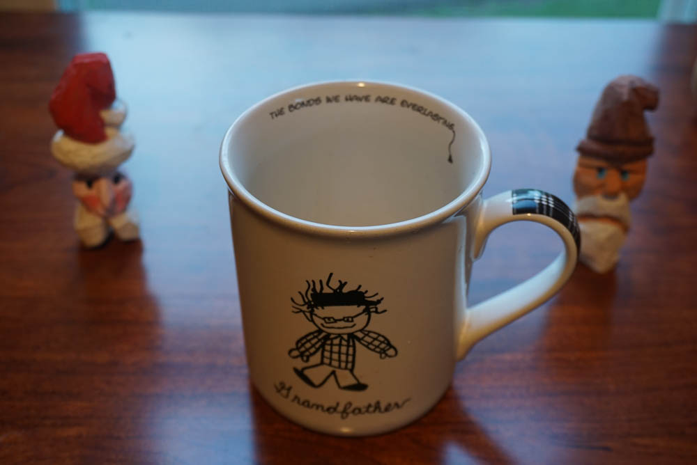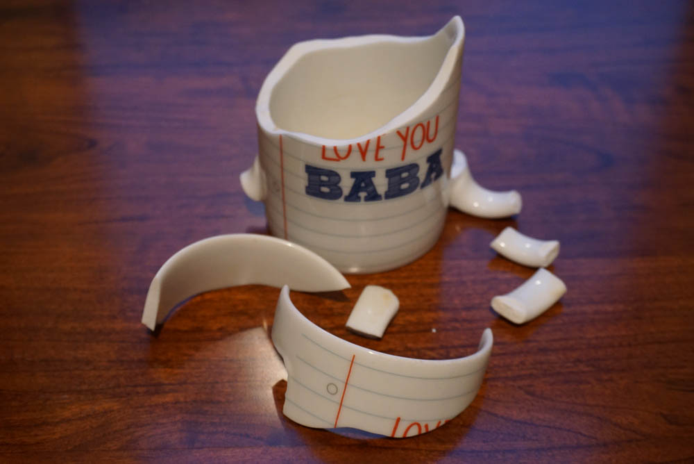 This cup has my go-to mug for 5 years. Now shattered it will be replaced, though I will still have a relationship with the person who gave it to me. I prefer shattered things, to shattered relationships. The truth is, relationships are a lot more valuable than things. Things have many good memories attached to them, but can easily be replaced. Now I have choices. I suspect, it will depend upon whether, I want a large or regular cup of coffee, to start off my day! The gift giver is like a granddaughter to me. Baba, means grandfather in Bangla!