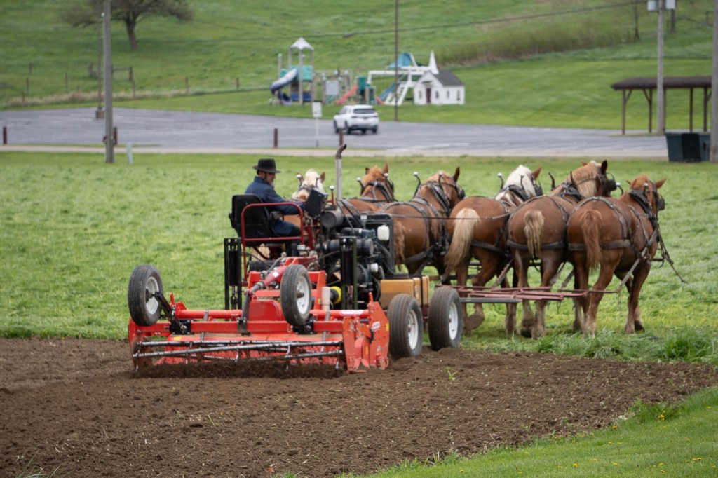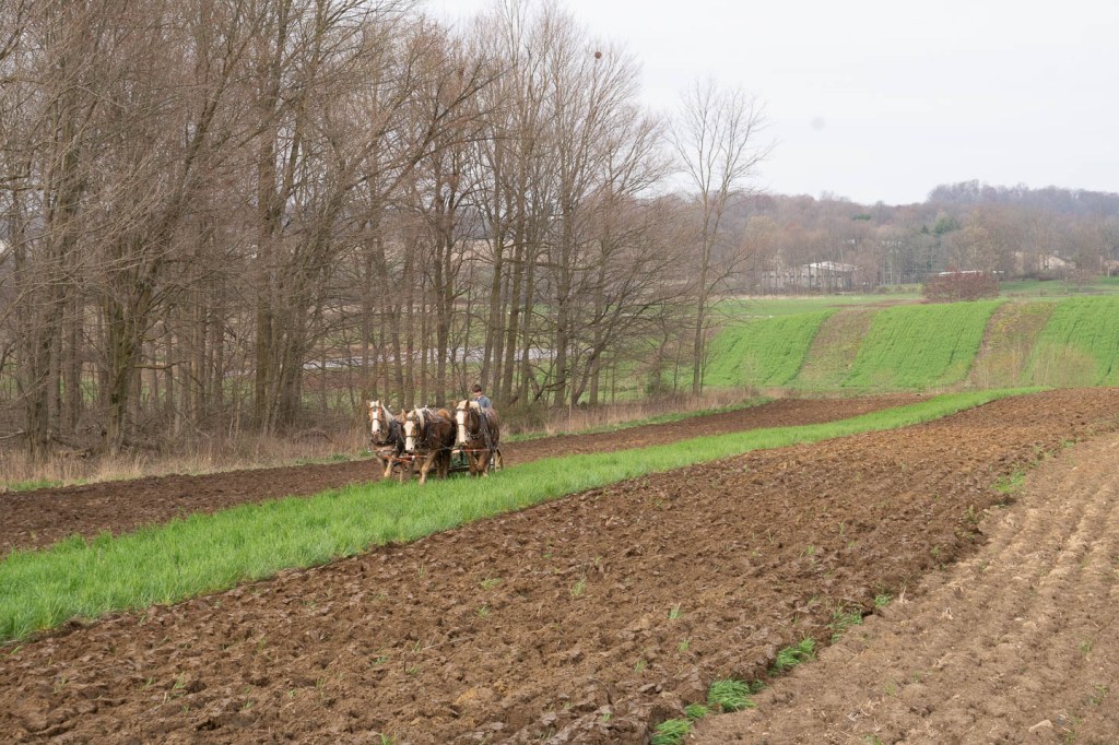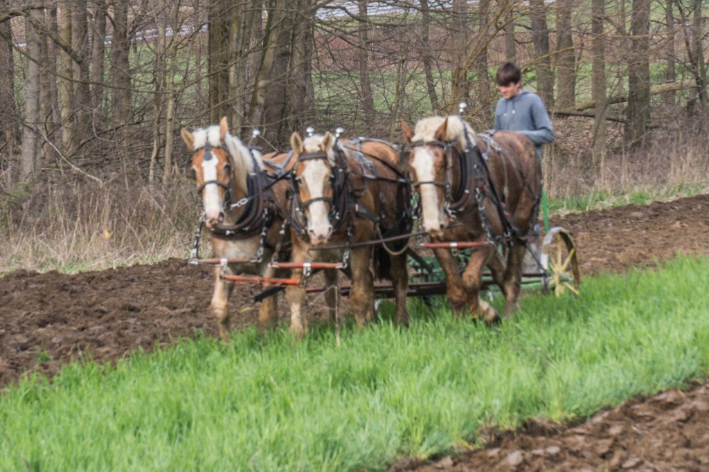 Plowing with three workhorses, a familiar scene in Holmes County, Ohio in the Spring time!