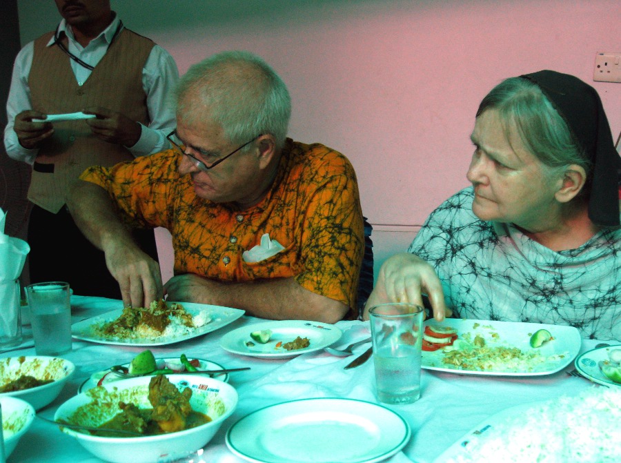 WE STAYED AT HOTEL AMIR IN MYMENSINGH. It was a nice hotel. Here are glimpses of a mural in the stairwell along with the ladies.