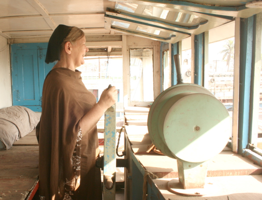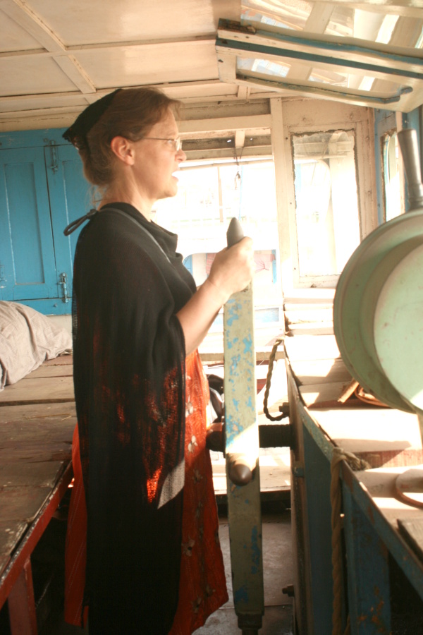 WE DID A TOUR ACROSS THE BURIGANGA TO SEE THE SHIP YARDS AND A GARMENT FACTORY. Here the ladies are posing with sewing machines. The workers loved to show us their workplace and their products.