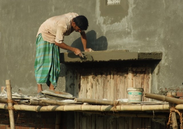 HERE IS A MASON AT WORK IN Kumarkhali.